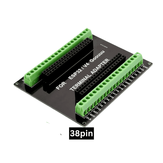 The Black ESP32/V4/Goouuu 38PIN Terminal Adapter is a convenient breakout board that converts the standard ESP32 38-pin header into easy-to-use screw terminals. This makes wiring sensors, motors, modules, and external circuits much simpler—no soldering required.