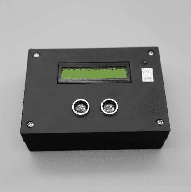 Enclosure for Arduino Uno, 16×2 LCD, and Ultrasonic Sensor Black